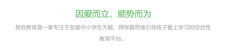 契合教育是一家专注于发掘中小学生天赋、用学霸思维引导孩子爱上学习的综合性教育平台。